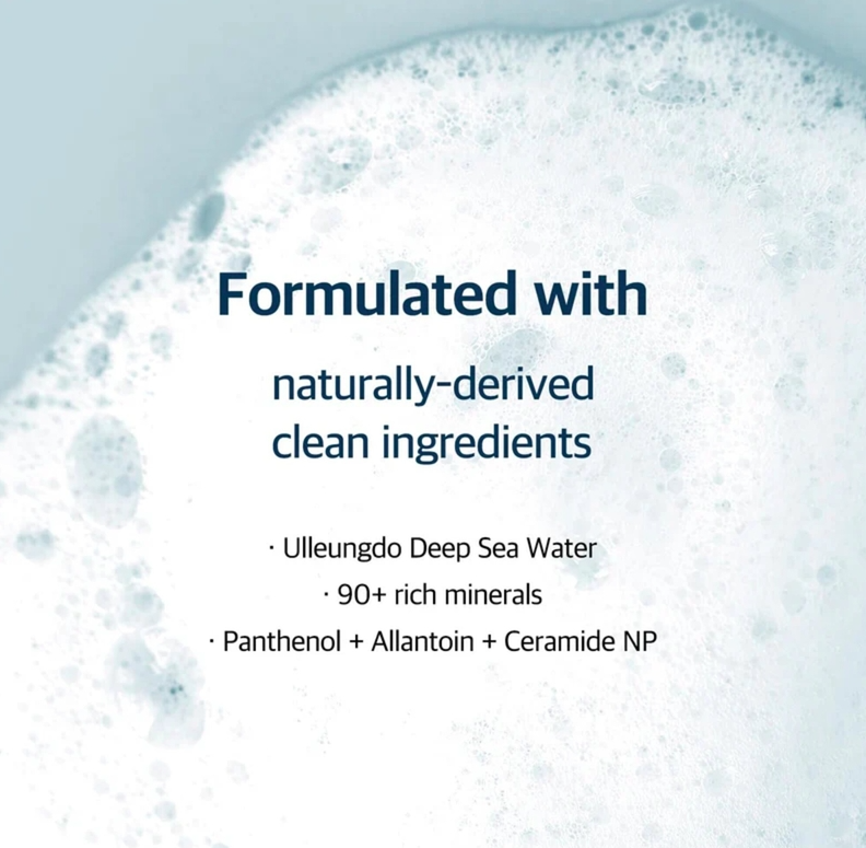 This pH balancing, slightly acidic formula contains 74 kinds of natural minerals from the deep sea island waters of Ulleung-do to prevent dryness and retain moisture in the skin. The fine, plush bubbles effectively foam to gently cleanse even the most sensitive of skin types.